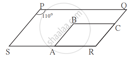 आकृति में `square` PQRS तथा `square` ABCR दो समांतर चतुर्भुज है। ∠P = 110° तो `square `ABCR के सभी कोणों के माप ज्ञात कीजिए।