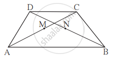 संलग्न आकृति में `square` ABCD यह समलंब चतुर्भुज है। AB || DC, बिंदु M तथा बिंदु N क्रमशः विकर्ण AC तथा विकर्ण DB के मध्यबिंदु है तो सिद्ध कीजिए कि MN || AB