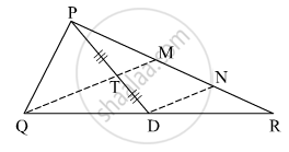 आकृति में रेख PD यह ΔPQR की माध्यिका है। बिंदु T यह PD का मध्यबिंदु है। QT को आगे बढ़ाने पर यह PR को बिंदु M पर प्रतिच्छेदित करता है। तो सिदघ कीजिए कि `"PR"/"PM" = 1/3`
