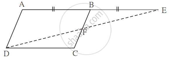 आकृति में `square` ABCD समांतर चतुर्भुज है। किरण AB पर बिंदु E इस प्रकार है कि BE = AB तो सिद्ध कीजिए कि रेखा ED यह रेख BC को बिंदु F पर समद्विभाजित करती है।