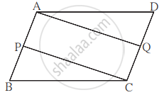 आकृति में, `square` ABCD समांतर चतुर्भुज है। बिंदु P तथा बिंदु Q क्रमशः भुजा AB तथा भुजा DC के मध्यबिंदु हैं तो सिद्ध कीजिए कि `square` APCQ समांतर चतुर्भुज है।