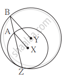 आकृती मध्ये, केंद्र X व Y असणारी अंतर्स्पर्शी वर्तुळे बिंदू Z मध्ये स्पर्श करतात. रेख BZ ही मोठ्या वर्तुळाची जीवा लहान वर्तुळाला बिंदू A मध्ये छेदते. तर सिद्ध करा - रेख AX || रेख BY.