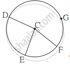 आकृती मध्ये, केंद्र C असलेल्या वर्तुळावर G, D, E आणि F हे बिंदू आहेत. ∠ECF चे माप 70° आणि कंस DGF चे माप 200° असेल, तर कंस DE आणि कंस DEF यांची मापे ठरवा.