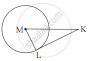 सोबतच्या आकृतीत, बिंदू M वर्तुळकेंद्र आणि रेख KL हा स्पर्शिकाखंड आहे. जर MK = 12, KL = `6sqrt3` तर