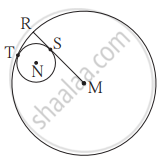 आकृती मध्ये, केंद्र N असलेले वर्तुळ केंद्र M असणाऱ्या वर्तुळाला बिंदू T मध्ये स्पर्श करते. मोठ्या वर्तुळाची त्रिज्या लहान वर्तुळाला बिंदू S मध्ये स्पर्श करते. जर मोठ्या व लहान वर्तुळांच्या त्रिज्या अनुक्रमे 9 सेमी व 2.5 सेमी असतील तर खालील प्रश्नांची उत्तरे शोधा आणि त्यांवरून MS : SR हे गुणोत्तर काढा.
