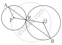 आकृती मध्ये, केंद्र P आणि Q असलेली वर्तुळे परस्परांना बिंदू R मध्ये स्पर्श करतात. बिंदू R मधून जाणारी रेषा त्या वर्तुळांना अनुक्रमे बिंदू A व बिंदू B मध्ये छेदते. तर -