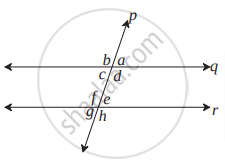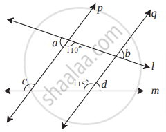 आकृती पाहा. रेषा p || रेषा q आणि रेषा l व रेषा m या छेदिका आहेत. काही काेनांची मापे दाखवली आहेत.
