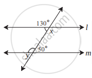 आकृती मध्ये दर्शवलेल्या कोनांच्या मापांवरून ∠x आणि ∠y यांची मापे काढा आणि सिद्ध करा की रेषा l || रेषा m.