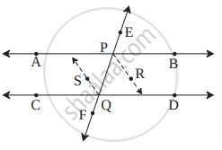 रेषा AB व रेषा CD या रेषांना रेषा EF ही अनुक्रमे P व Q बिंदूंत छेदते. किरण PR व किरण QS हे समांतर किरण असून अनुक्रमे ∠BPQ व ∠PQC चे दुभाजक आहेत, तर सिद्ध करा रेषा AB || रेषा CD.