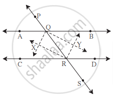 आकृती मध्ये रेषा AB || रेषा CD व रेषा PS ही त्यांची छेदिका आहे. किरण QX, किरण QY, किरण RX, किरण RY हे काेनदुभाजक आहेत, तर `square`QXRY हा आयत आहे हे दाखवा.