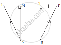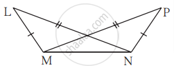 खालील आकृतीत दाखवल्याप्रमाणे ΔLMN व ΔPNM या त्रिकोणांमध्ये LM = PN, LN = PM आहे तर या त्रिकोणांच्या एकरूपतेची कसोटी लिहा व उरलेले एकरूप घटक लिहा.