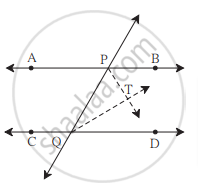 खाली दिलेले आकृती मध्ये रेषा AB || रेषा CD आणि रेषा PQ ही त्यांची छेदिका आहे. किरण PT आणि किरण QT हे अनुक्रमे ∠BPQ व ∠PQD चे दुभाजक आहेत, तर सिद्ध करा की ∠PTQ = 90°