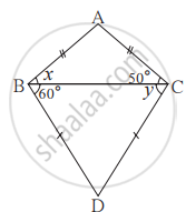खालील आकृती मध्ये दाखवलेली माहिती पाहा. x आणि y च्या किंमती काढा. तसेच ∠ABD व ∠ACD ची मापे काढा.