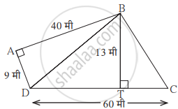 चौकोन ABCD मध्ये l(AB) = 13 सेमी, l(DC) = 9 सेमी, l(AD) = 8 सेमी, तर ☐ABCD चे क्षेत्रफळ काढा.