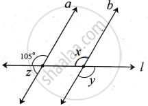 सोबतच्या आकृतीत, रेषा a || रेषा b. रेषा l ही छेदिका आहे. दिलेल्या कोनांच्या मापांवरून ∠x, ∠y, ∠z यांची मापे काढा.