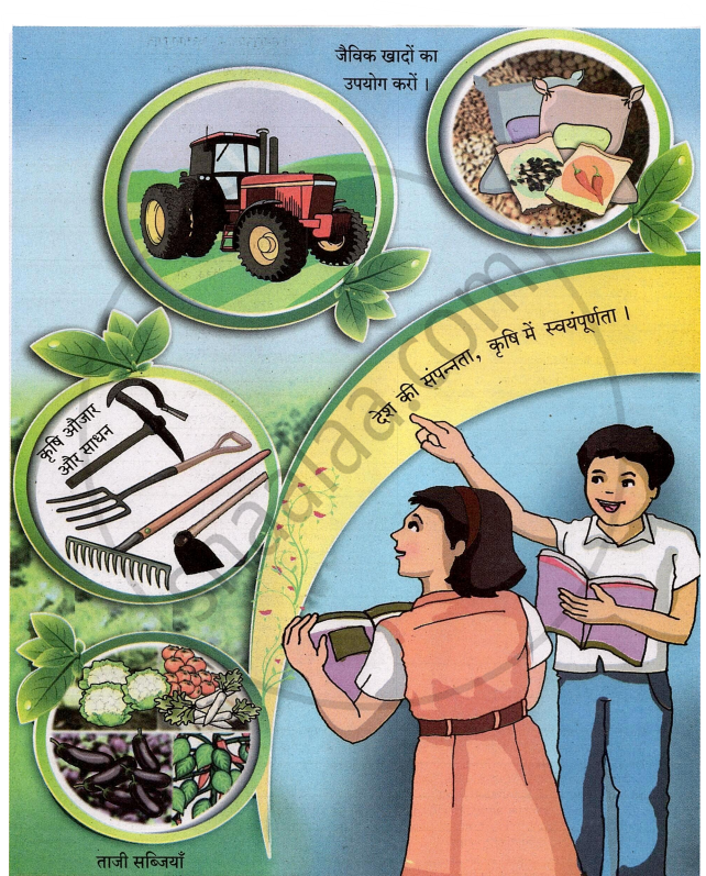 चित्र में दिखाई देने वाली वस्तुएँ, वाक्यों के संदर्भ में चर्चा कराके उनके महत्त्व और कार्य आदि के बारे में पूछें।