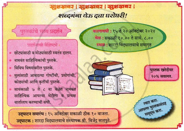 - पुस्तक प्रदर्शनात तुम्ही कोणत्या प्रकारची पुस्तके खरेदी कराल, ते लिहा.