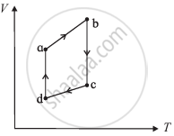 The figure shows the V-T diagram for one cycle of a hypothetical heat engine which uses the ideal gas. Draw the p-T diagram of the system.