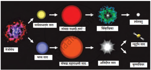 आकृती अनुसार ताऱ्यांची निर्मिती व जीवनप्रवासासंदर्भात परिच्छेद लिहा.