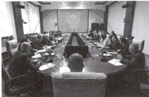 What advantage of a joint stock company is highlighted in this image showing a boardroom meeting of directors?