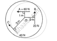 Three forces A, B and C are acting on a rigid body which can turn about O in fig.9. If all the three forces are applied simultaneously, in which direction will the body move? Explain.