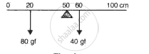 Fig. shows a uniform meter scale weighing 100 N pivoted at its centre. Two weights of 500 N and 300 N are hung from the ruler as shown in fig.