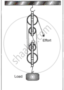 (a) Fig represents an incomplete diagram of a simple string pulley system. Copy this diagram on a new page and complete it and mark where the effort must be applied to lift the load.