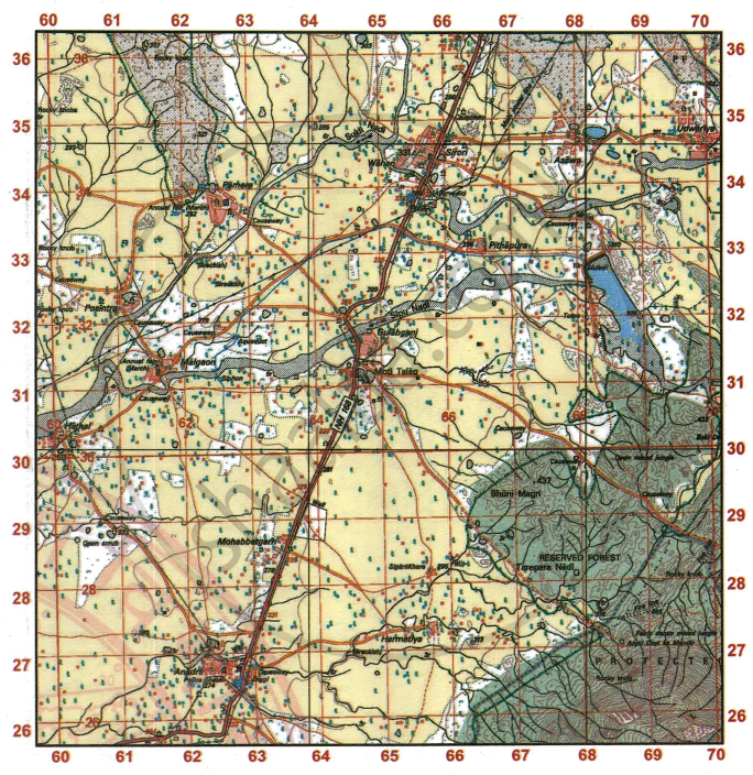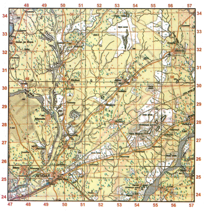 - Give the four-figure grid reference of the perennial well to the north of Jhamar.
