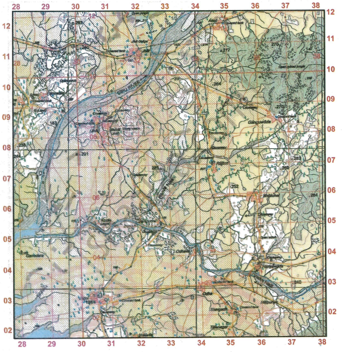 Study the extract of the Survey of India Map Sheet No. G43S7 Map 7 and answer the following questions [Eastings 28-38, Northings 02-12]: