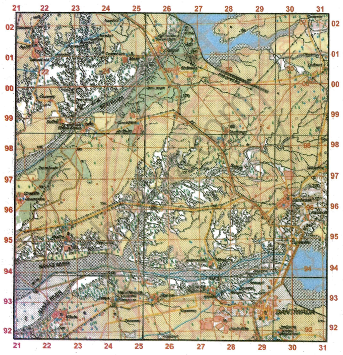 - In the given map extract, in which course of its journey is the Banas river? Give a reason to support your answer.