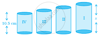 There are four containers that are arranged in the ascending order of their heights. If the height of the smallest container given in the figure is expressed as `7/25 x = 10.5` cm. Find the height of the largest container.