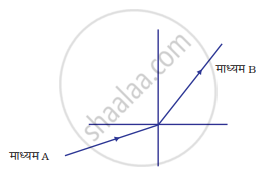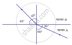 चित्र में किसी प्रकाश किरण को माध्यम A से माध्यम B में गमन करते दर्शाया गया है। माध्यम A के सापेक्ष माध्यम B का अपवर्तनांक है :