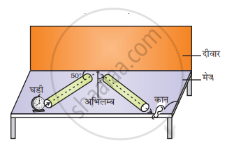 चित्र में कान द्वारा घड़ी की टिक-टिक की प्रबलतम ध्वनि सुनने के लिए कोण x ज्ञात कीजिए।