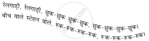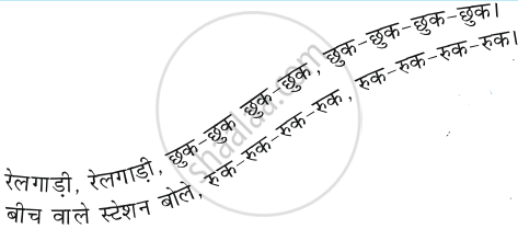 तड़क-भड़क, लोहे की सड़क, यहाँ से वहाँ, वहाँ से यहाँ। छुक-छुक, छुक-छुक, लाइट्स आती, पर कर जाती। बालू रेत, आलू का खेत, बाजरा धान, बुड्ढा किसान। हरा मैदान, मंदिर मकान, चाय की दुकान.....