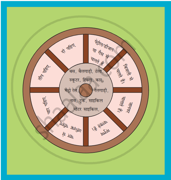 नीचे लिखी जगहों पर अपने घर से कैसे जाना चाहोगे? वाहन का नाम डिब्बे में लिखो।