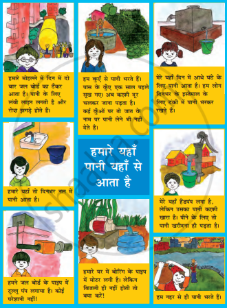 तुम्हारे यहाँ जिस तरह पानी आता है उस पर (✓) निशान लगाओ। अगर किसी अलग तरीके से आता है तो अलग से कॉपी में लिखो?