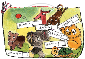 This time the kangaroo, chimp, deer, giraffe, and tiger came to play. But the tiger lost the game. He rubbed off some points in anger.