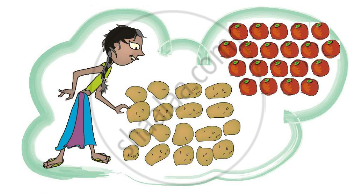 Ramu wanted to give these vegetables to his friends. He gave Aboobacker one-fifth of these tomatoes and `1/3` of the potatoes. Srija got `2/5` of the tomatoes and `3/6` of the potatoes. Nancy got the rest of these vegetables. Circle Aboobacker’s share in blue. Circle Srija’s share in yellow.