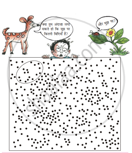 अंदाज़ा लगाओ कि गोले के अंदर कितनी बिंदियाँ हैं। अब उन्हें गिनो और देखो कि तुम्हारा अंदाज़ा कितना सही है। अलग-अलग गोले बनाकर यह खेल अपने दोस्तों के साथ खेलो और देखो कि कौन सबसे अच्छा अंदाजा लगाता है।