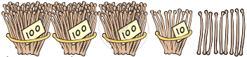 पता लगाओ कि अलग-अलग जानवरों ने दस और सौ की कितनी कितनी थैलियाँ लीं और कितनी चीजें खुली ली।