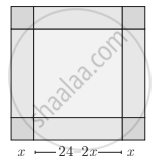 An open box is to be made from a square piece of material, 24 cm on a side, by cutting equal square from the corner and turning up the side as shown. Express the volume V of the box as a function of x
