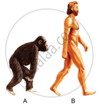 Given alongside are two figures (A and B) representing the two stages of evolution of human beings.
