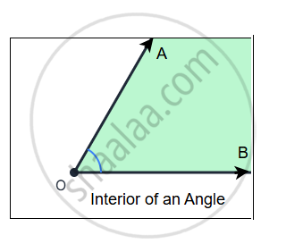 The interior of an angle is defined as the region or planar area that lies between the two rays (or "arms") that form the angle.