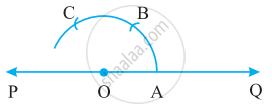 Step 2: Place the pointer of the compasses at O and draw an arc of convenient radius which cuts the line `bar"PQ"` at a point say, A.
