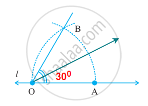 To construct an angle of 30°, we need to draw an angle of 60° as above then bisect it with the process of an angle bisector.