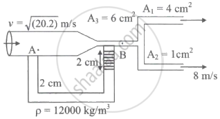By equation of continuity:- `"A"_1"v"_1="A"_2"v"_2`