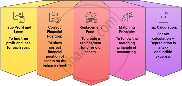 - Charging depreciation helps show true profit or loss, accurate asset values, replacement fund creation, matching cost to revenue, and proper tax calculation.