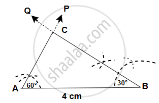 With B as center, draw another arc of radius 4 cm. Let the arcs intersect at point C.