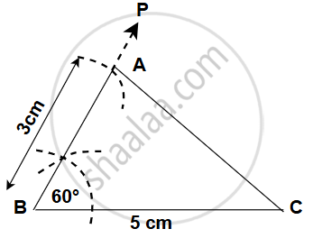 With B as the centre, draw an arc of radius 3 cm to locate point A on the 60° line.