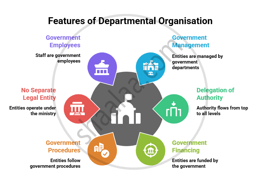 A departmental organisation is a business unit fully owned, managed, and financed by the government, operating as part of a specific government ministry or department, without any separate legal status.